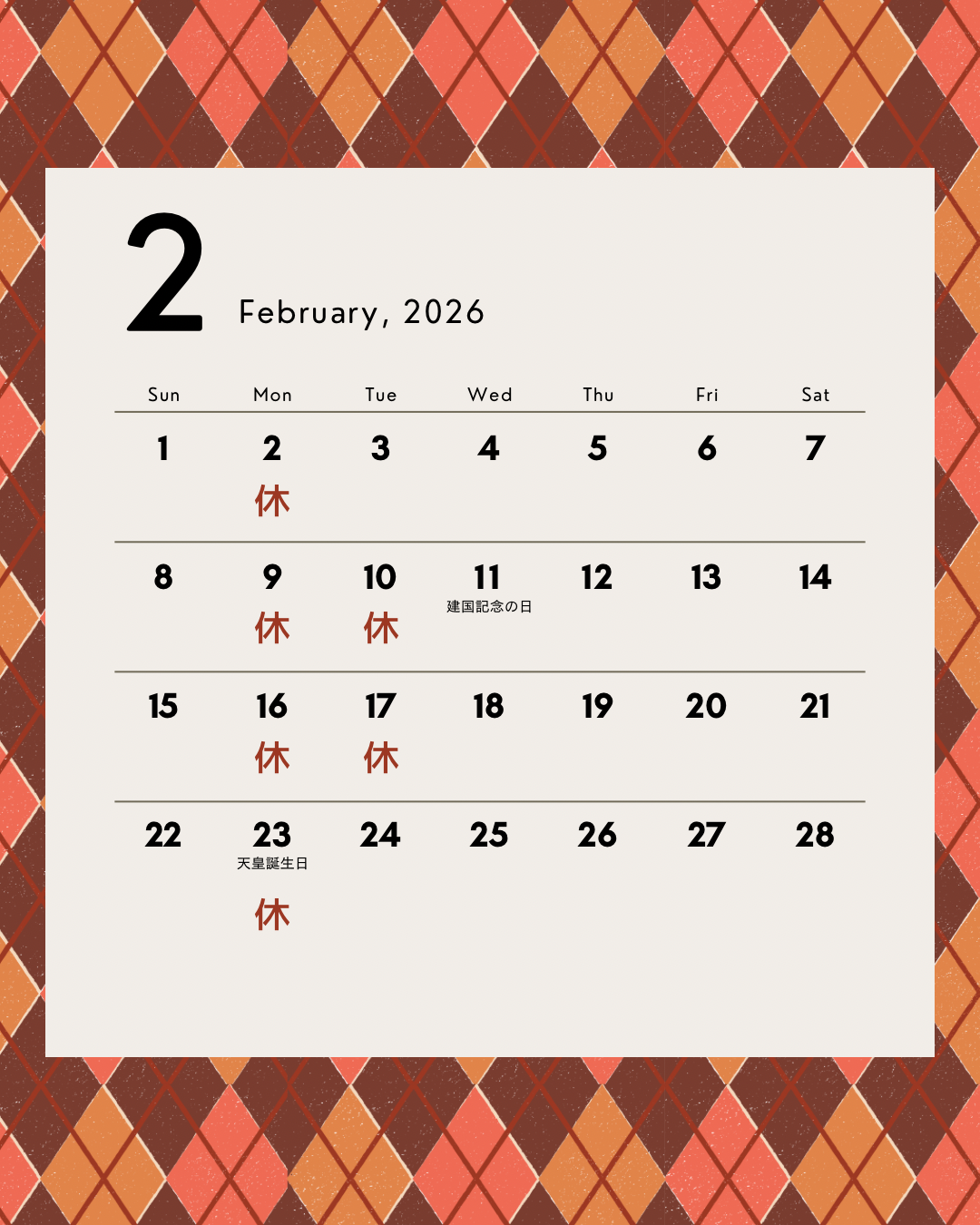 さて本日は、2月の定休日についてご案内 です!