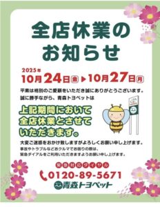 上記の期間全店お休みになります!
