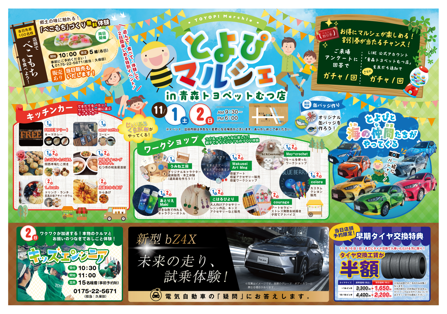 さて!今週末の 11月1日(土)・2日(日) は、楽しいイベント 「とよぴマルシェ」 を開催いたします🎉