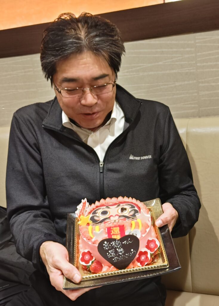 2025年11月25日 祝!!還暦!! こんにちは! 車両部 金子です😊 あ あ だいぶだいぶ遅れてしまいましたが、 9月に還暦を迎えた、車両部高橋さんのお祝いをしました🎉 あ 車両部みんなからのささやかなプレゼント🎁と サプライズ!!高島顧問からの還暦ケーキ🎂は 縁起だるまの右目を高橋さんが描いて完成!! 大いに盛り上がりました😊 あ あ 車両部の頼れる存在高橋さん!! みんなからのプレゼント🎁をたくさん愛用してください😊 還暦おめでとうございます! あ あ 🎂トヨタのクルマなら🎂 🎁とよぴのお店🎁 🎉青森トヨペット🎉