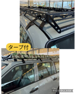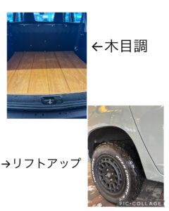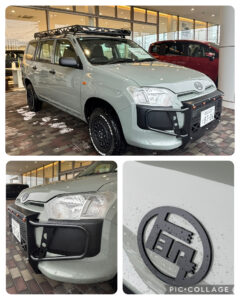 ボディーはアースカラー。リフトアップやフロントグリル、タープなど