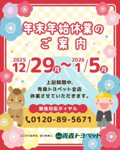 2025年12月19日 お知らせ 皆さん、こんにちは! 12月29日(月)〜1月5日(月) まで、年末年始休業となります。 ご不便をお掛けいたしますが、 何卒ご理解賜りますようお願い申し上げます。 トヨタのクルマなら とよぴのお店 🚗青森トヨペット🚗