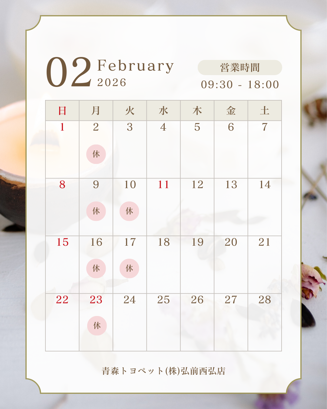 さて本日は、2月の定休日についてご案内 です!