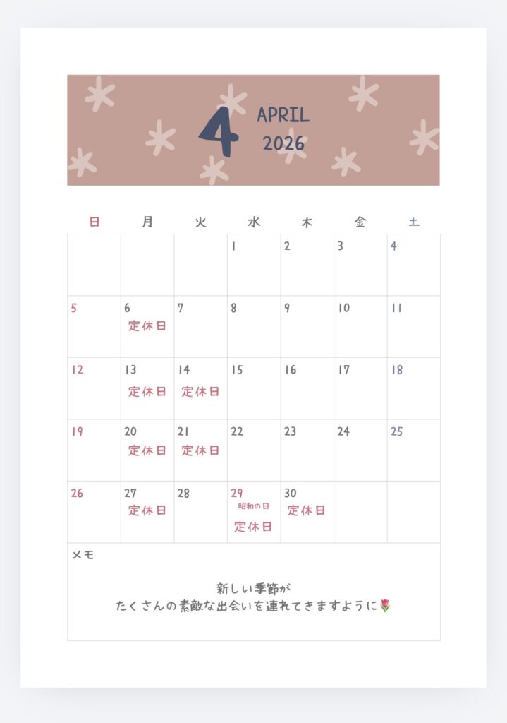 2026年04月01日 営業日カレンダー こんにちは青森西店松浦です🎀 遅くなりましたが4月の営業カレンダーです🗓 少しずつ暖かくなり、 春らしい季節になってきましたね^^ 新生活が始まる方も多いこの時期、 日々の移動やお出かけが より快適で安心できるものになるよう、 しっかりサポートさせていただきます★★ 4月も皆さまのご来店を 心よりお待ちしておりますᴖ ᴖ❤️ 🚗車のことなら🚗 🐝とよぴのお店🐝 🍎青森トヨペット🍎