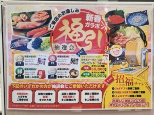 ハガキを持ってご来店するとガラポンが回せて、出た玉の色によって景品が分かれてます(^ω^)
